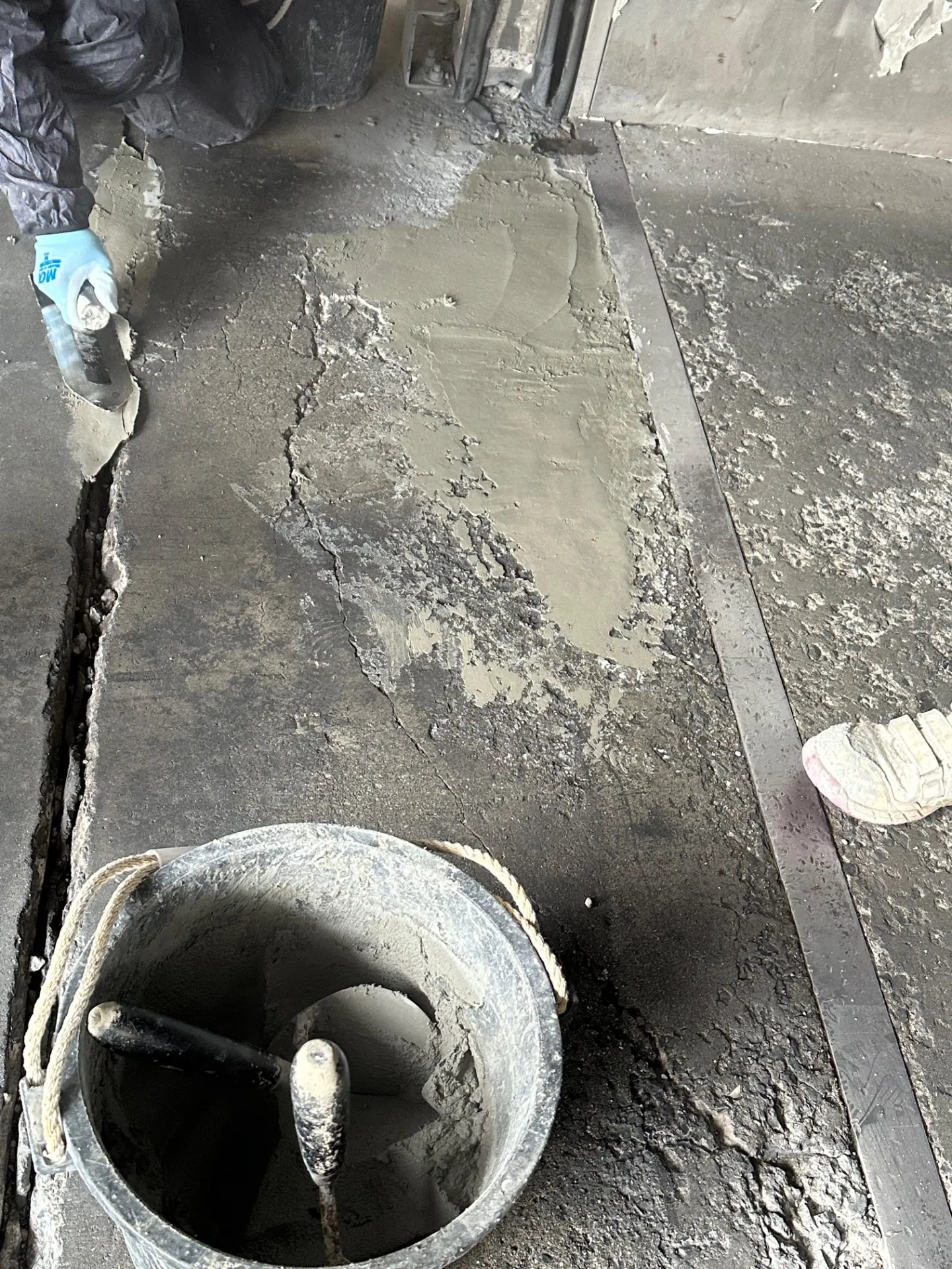 山口市にある運送会社の土間に隙間があったので、補修を実施しました。
